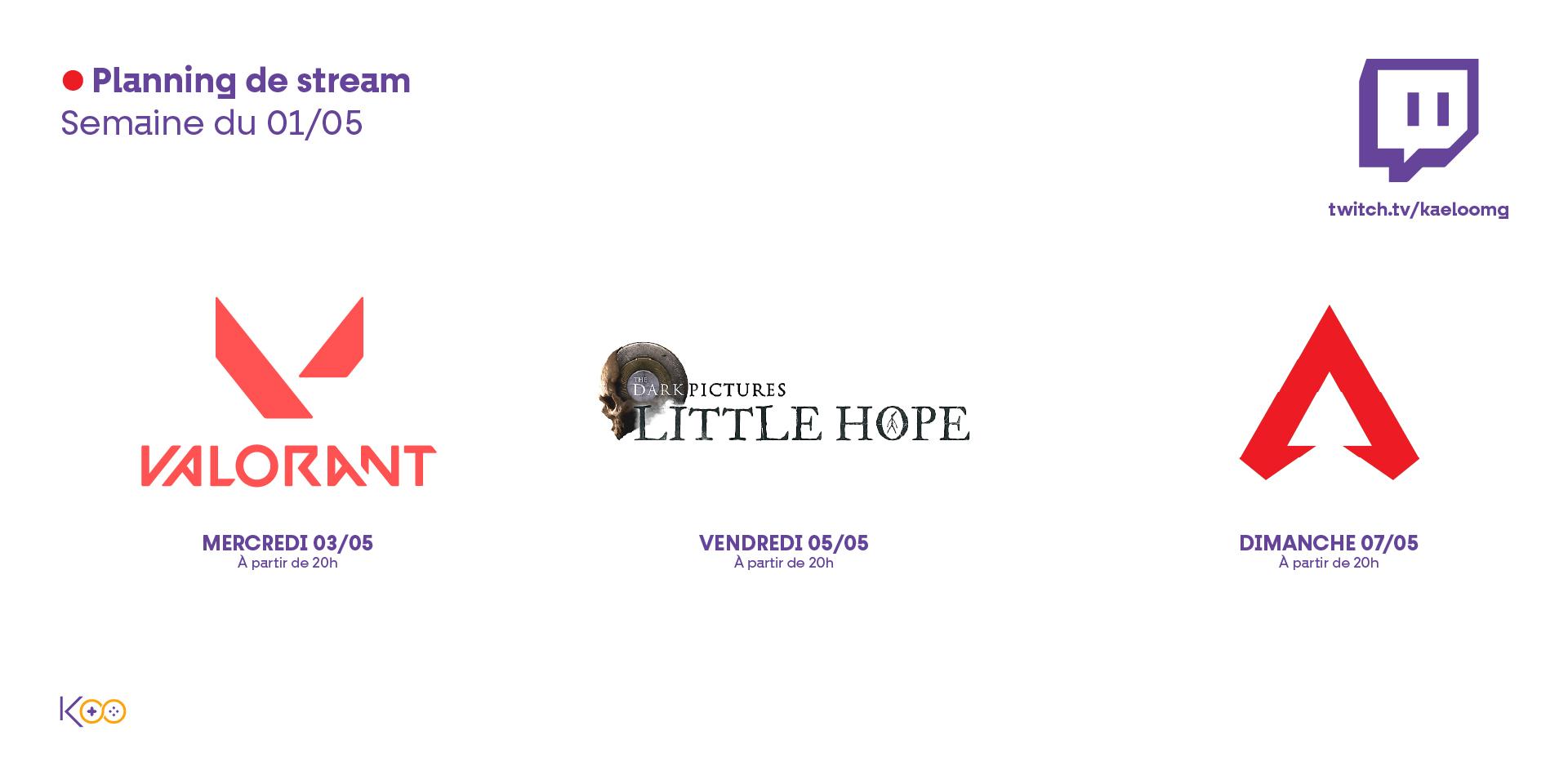 À très vite les amis !Holaaa les amis ! Cette semaine on se retrouve pour 3 jeux différents : • Mercredi on part sur Valorant même si ça fait quelques jours que je n'ai pas joué • Vendredi c'est le let's play de Little hope 💀 que j'espère finir directement ce soir là • Dimanche on change un peu et on part sur Apeeeex À très vite les amis ! 👋0 Commentaires 0 Parts 1264 Vue2