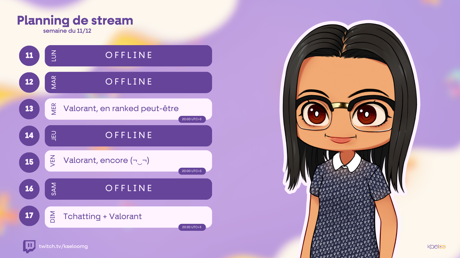 Hello hello ! Petite soirée Valorant en avance parce que demain je ne serai pas là. 🙂 On se retrouve sur https://twitch.tv/kaeloomg ?