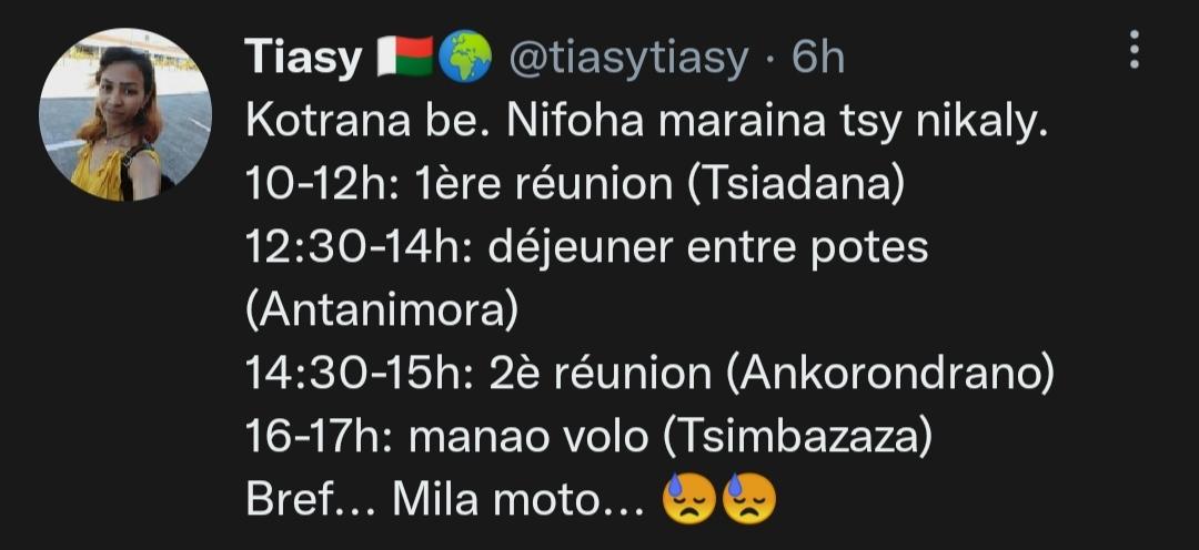 Connectez-vous pour aimer, partager et commenter! - Bon. Tsy afaka mandeh spa fa lasandRaFanja daholo ny vola... Enga anie ho vita tsara ny lalana... Oay! Hay moa tsika eto Madagasikara!Bon. Tsy afaka mandeh spa fa lasandRaFanja daholo ny vola... Enga anie ho vita tsara ny lalana... Oay! Hay moa tsika eto Madagasikara! 😅😅0 Commentaires 0 Parts 3837 Vue