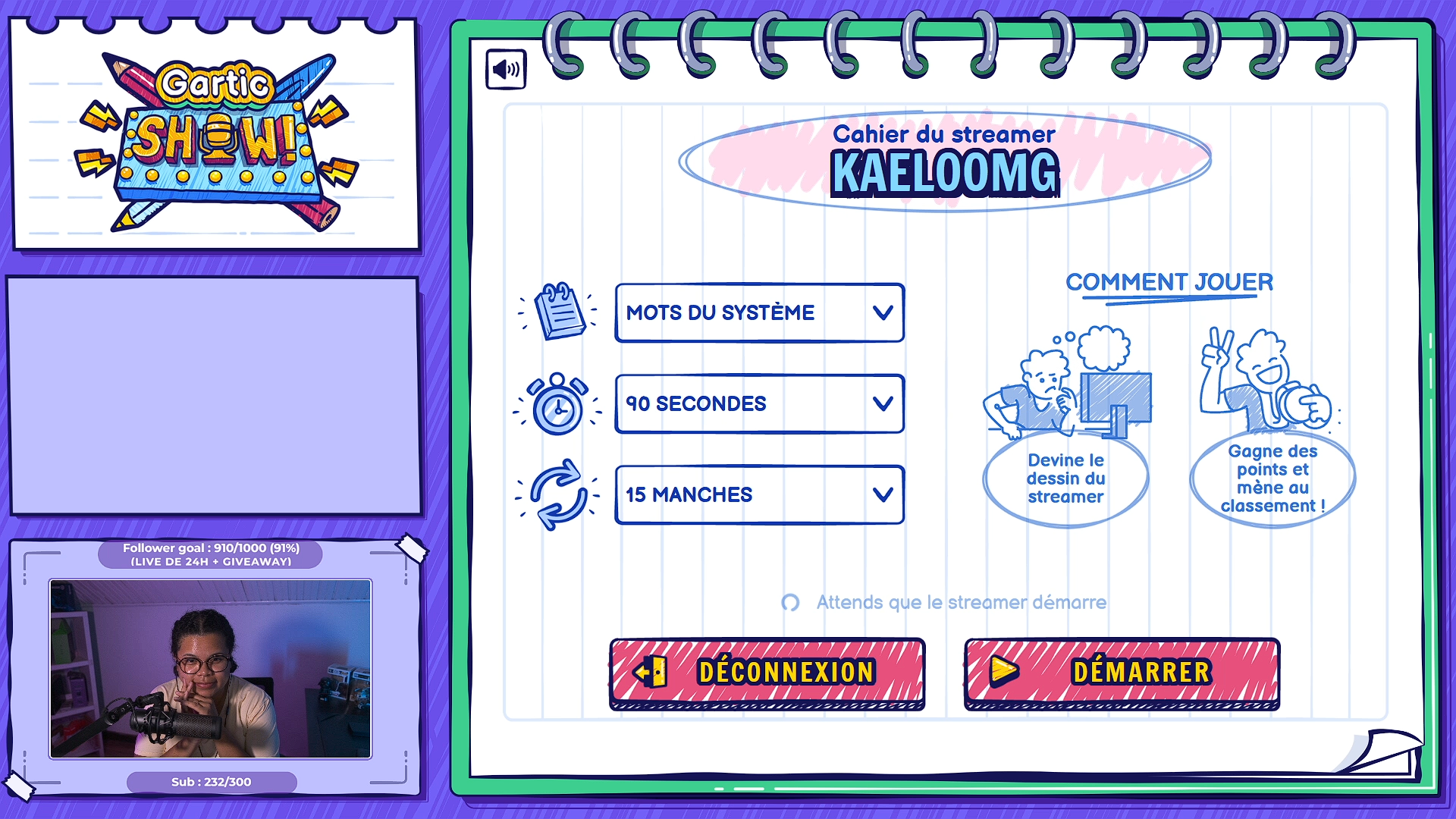 • Vendredi on va jouer ensemble sur Gartic show où tous les viewers peuvent participer directement via le tchat. En gros je vais dessiner les mots qui pop sur l'écran et vous devinez en écrivant dans le tchat !