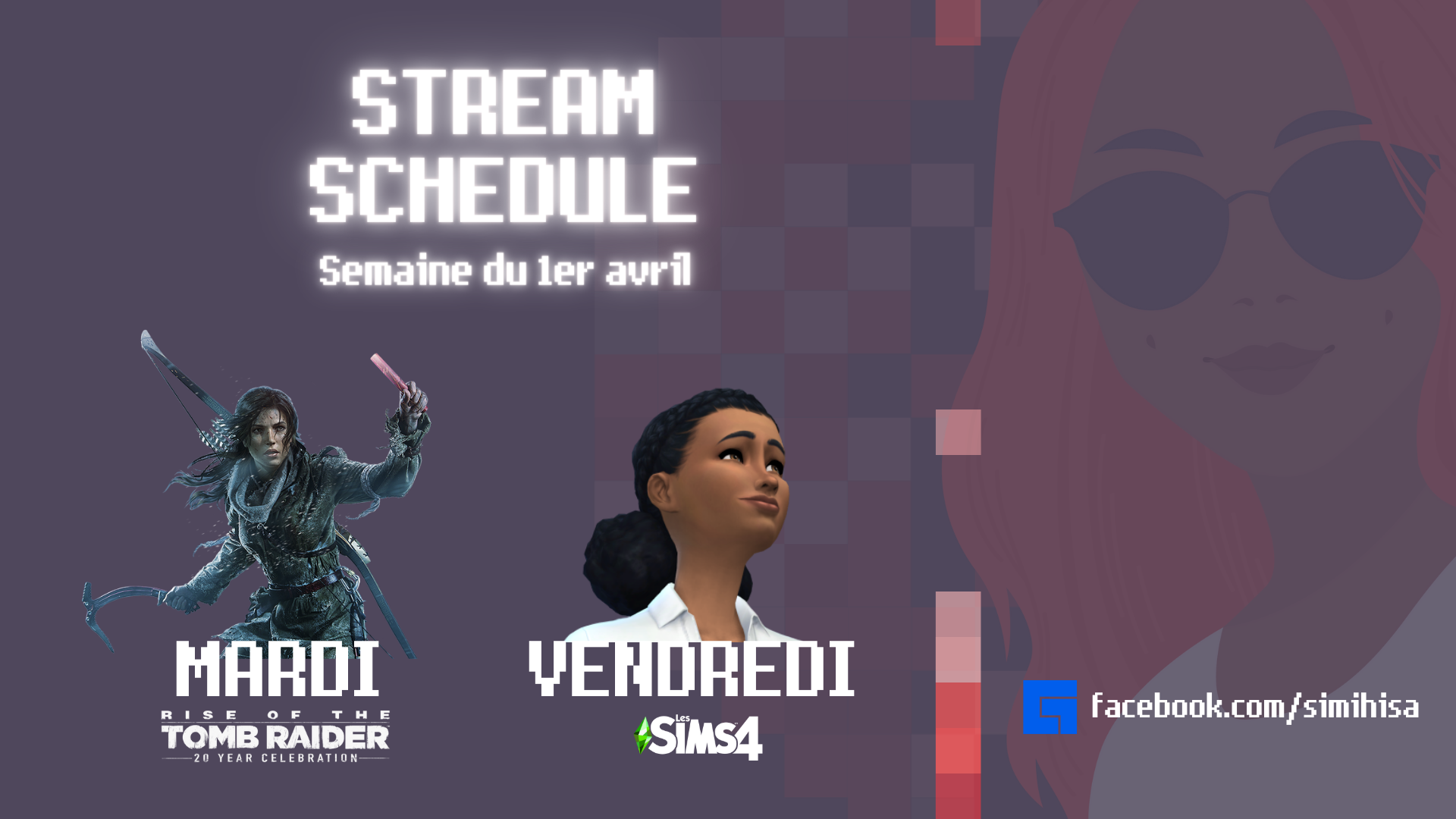 Voici notre programme pour cette semaine: découverte des nourrissons et du pack Grandir Ensemble sur Les Sims 4 mardi, suivi de Rise of the Tomb Raider vendredi.