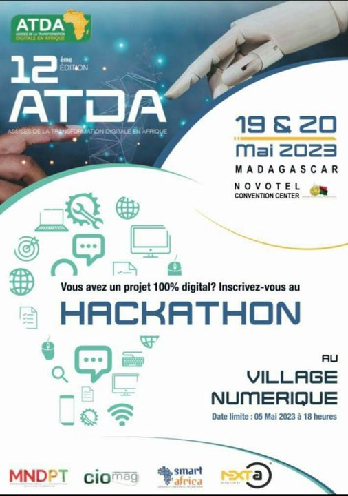 📍 Ne manquez pas l'opportunité de participer au hackathon organisé par les ATDA 2023 qui aura lieu les 19 et 20 Mai 2023 au Novotel Ivandry.